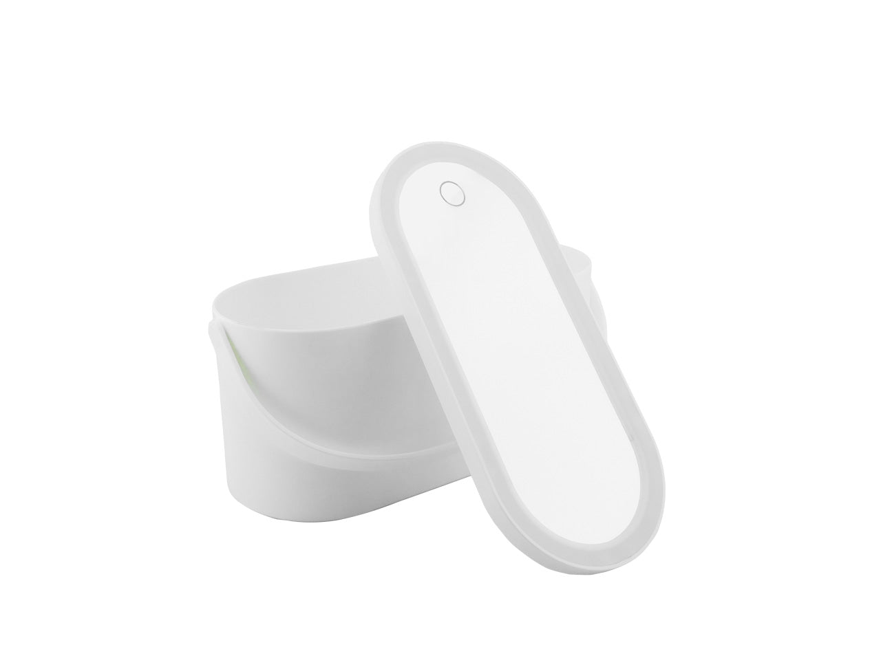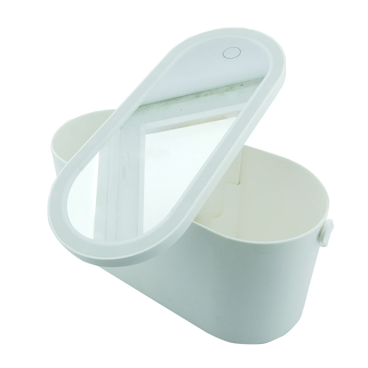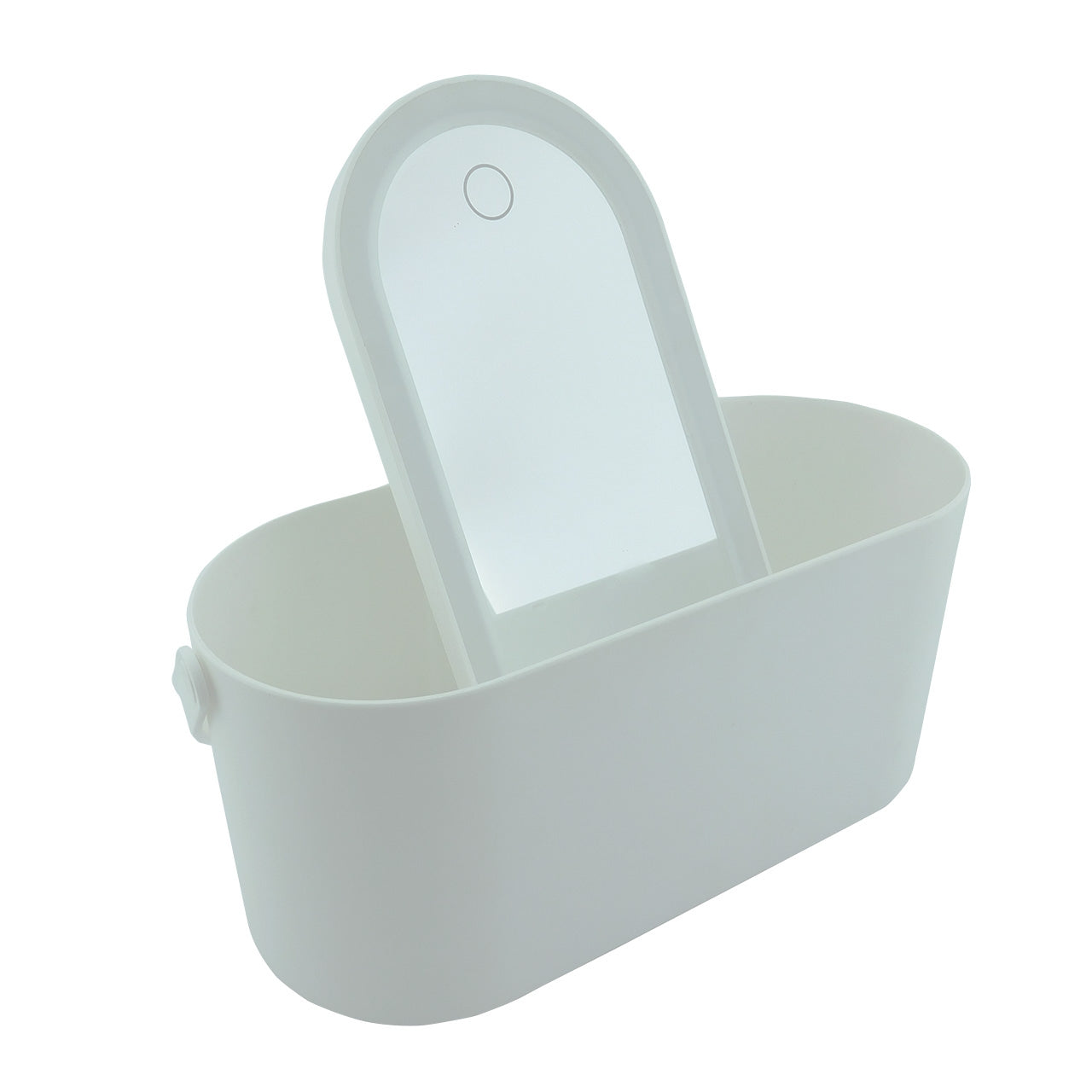 Cosmetiquero en plastico tapa con espejo y pata trasera que encaja en la base, luz led blanca, boton tactil, manija y cable USB. ¡BAJO DE PRECIO!0