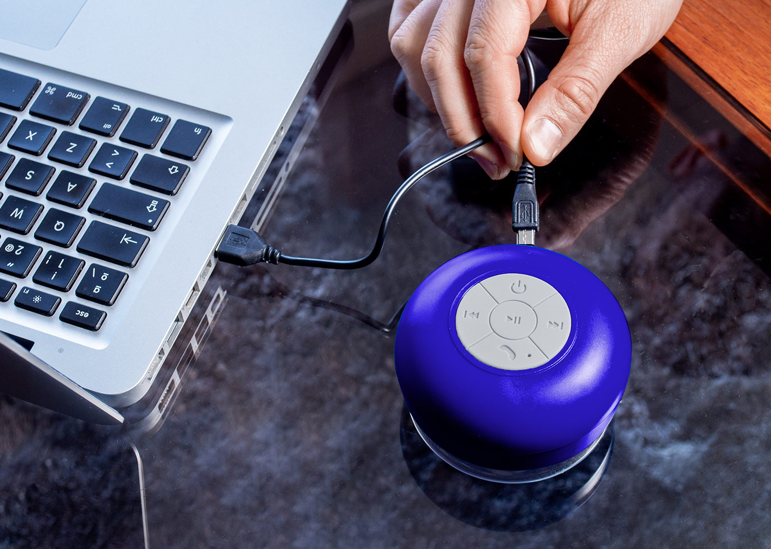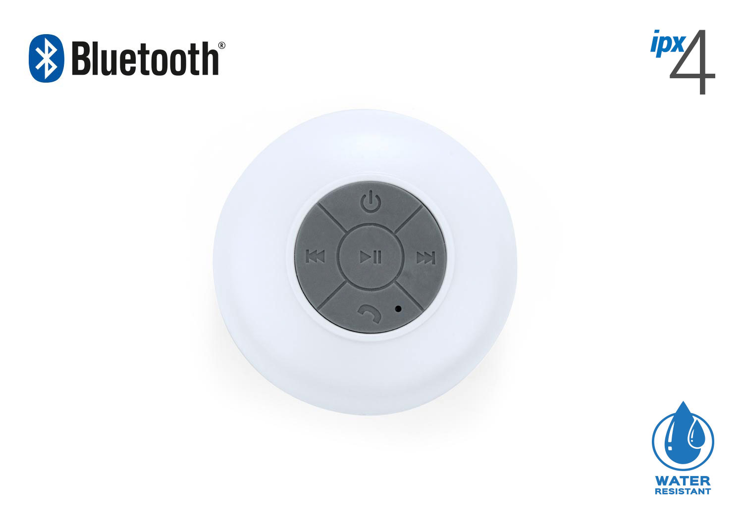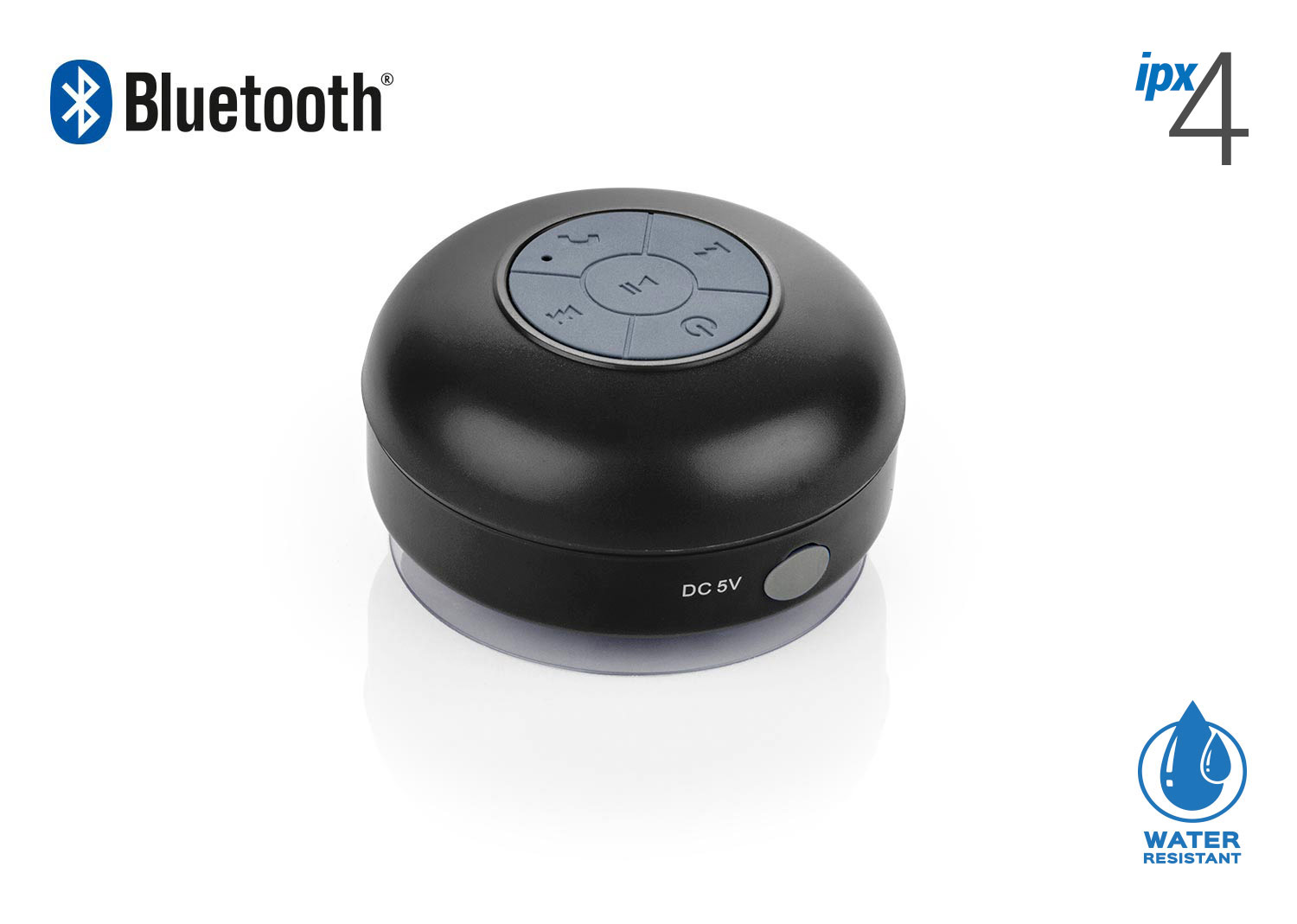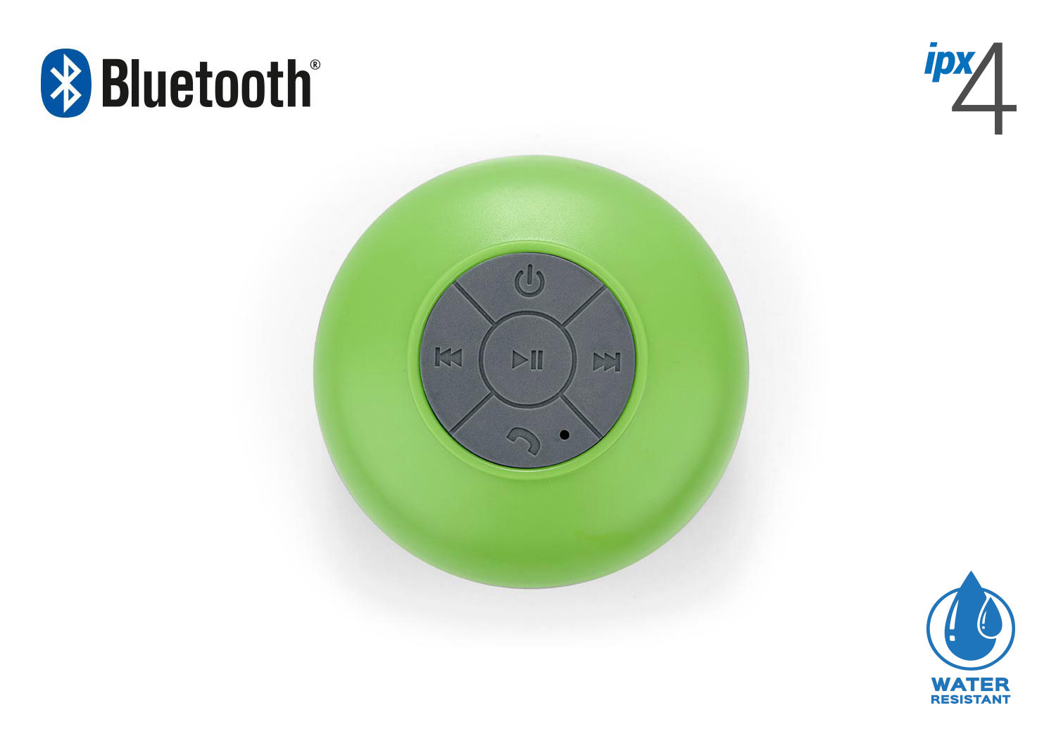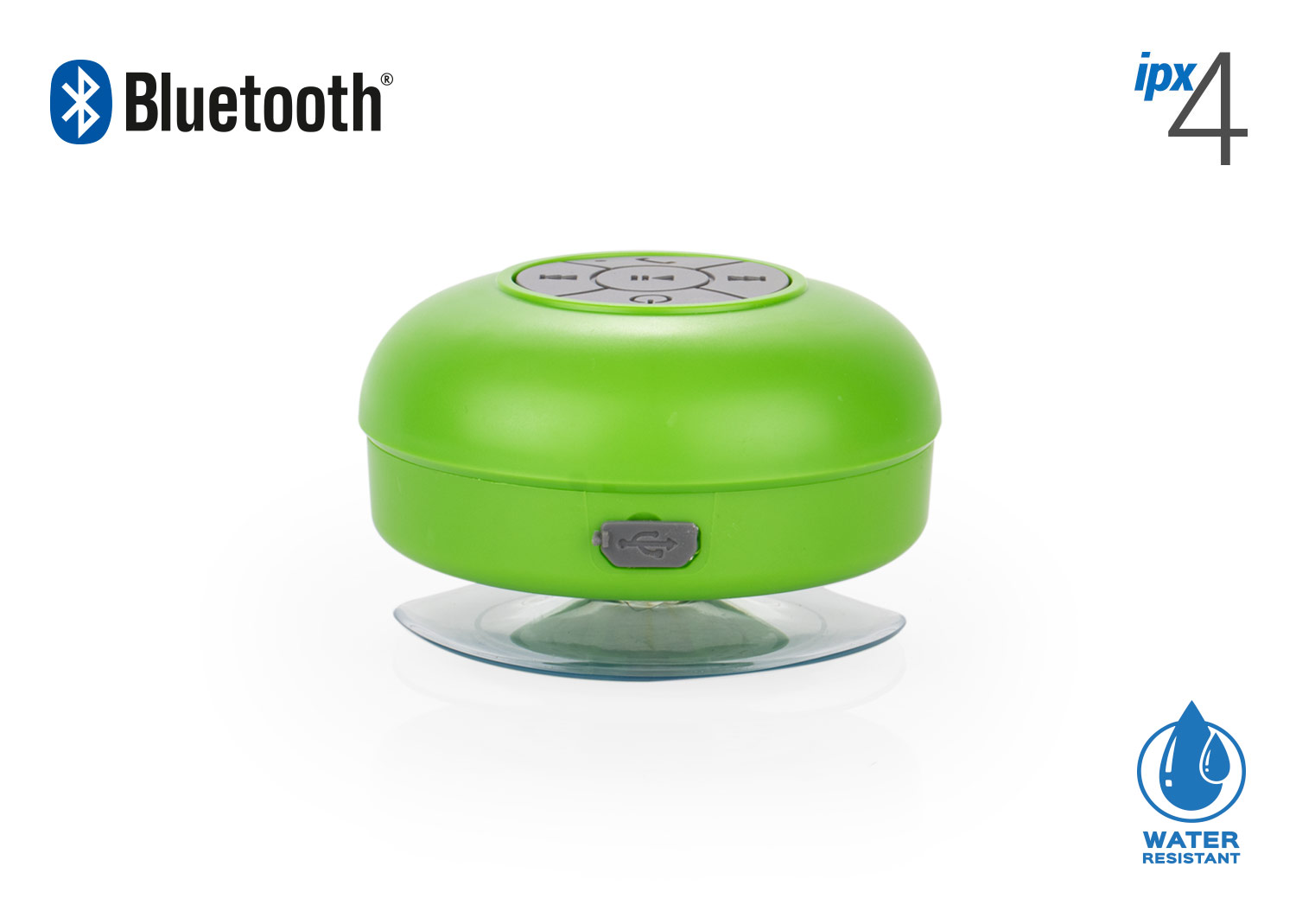 Altavoz Bluetooth V3,0 + EDR, Frecuencia de transmision: 2.4 g hz, fuente de alimentacion: DC 5V 100-120ma, bateria: 3.7v 400mAh de litio, tiempo de carga: aprox.3 horas, Tiempo de funcionamiento: aprox.6 horas. respuesta de frecuencia: 100 Hz-20kHz, salida: 3W, rango: hasta 10 mt. Incluye cable de carga y chupa de succion. Resistente al agua grado IPX4.